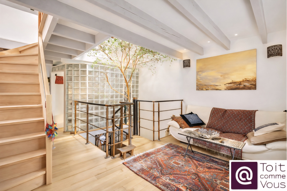 Rue Beaumarchais – Bas Montreuil Dans une ancienne usine réhabilitée au charme industriel, Toit comme Vous vous propose ce loft en triplex, niché au calme d’une cour pavée pleine de caractère, au cœur du Bas Montreuil, à proximité de Vincennes. Ce bien atypique de 75,73 m² loi Carrez (85,79 m² au sol) offre de beaux volumes et il est baigné de lumière. Rez-de-chaussée Une agréable pièce de vie avec cuisine ouverte et salle à manger (18,12 m² Carrez / 20,45 m² au sol) bénéficiant d’un chauffage au sol, complétée par une pièce donnant sur l’extérieur pouvant faire office de chambre ou de bureau ou de salon (10,57 m²), ainsi qu’un WC indépendant et un cellier. 1er étage Un niveau comprenant : un salon de 16,61 m² (17,94 m² au sol) une chambre de 6,27 m² une salle de bain Dernier étage Sous les toits, un espace chaleureux comprenant : une chambre de 5,41 m² Carrez (7,68 m² au sol) une salle d’eau un bureau / espace mezzanine de 10,93 m² Carrez (13,65 m² au sol) Ce niveau bénéficie de cinq Velux, apportant une belle luminosité naturelle. L’ensemble s’articule autour d’un escalier central au style industriel, véritable pièce maîtresse du lieu. Le triplex donne sur une cour pavée arborée, offrant un cadre paisible et rare à Montreuil. Situation À proximité de Vincennes Métro Croix-de-Chavaux (ligne 9) à environ 8 minutes à pied Commerces et vie de quartier du Bas Montreuil accessibles à pied Un bien atypique, lumineux et inspirant, idéal pour les amateurs de lofts et d’anciens ateliers réhabilités. Surface Carrez : 75,73 m² Surface au sol : 85,79 m² Chauffage : individuel au gaz (chauffage au sol au rez-de-chaussée) DPE : E
